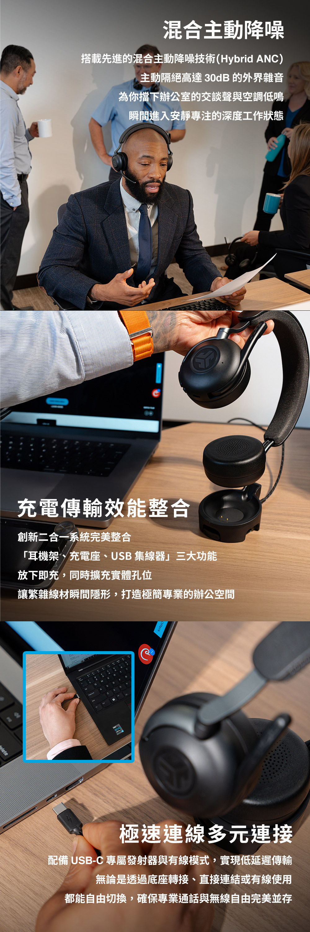 混合降噪|主動隔絕噪音達30dB,安靜專注擴充基座|內建集線器,充電傳輸一機搞定極速連線|附USB-C 發射器並支援有線連接清晰通話|自適應降噪麥克風,通話如面對面通透模式|一鍵切換環境音,免摘耳機即對話多點連線|跨裝置藍牙連線,辦公娛樂無縫切換超強續航|長達90 小時(降噪關) 60 小時(降噪開)翻轉靜音|旋轉式麥克風,上翻即刻進入靜音跨界相容|多種系統相容,辦公娛樂輕鬆切換極致舒適|雲朵泡棉頭帶,享受奢華皮革觸感尋找耳機|支援 Google Fast Pair 快速定位專屬 App|自定義專屬音效,掌握進階設定