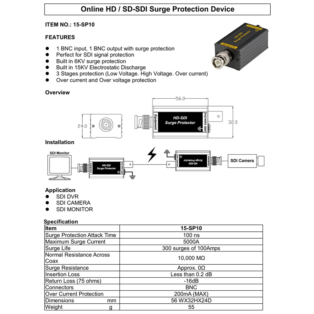 昌運監視器 3G/HD/SD-SDI突波保護器 6KV等級