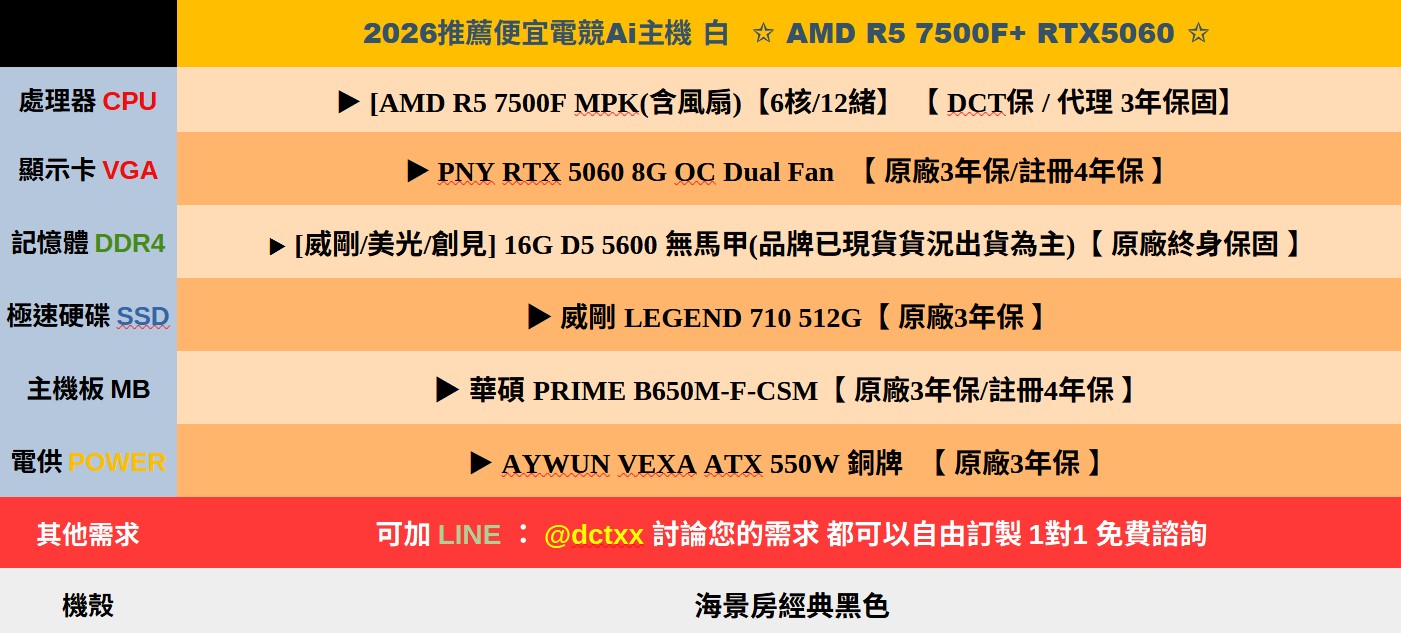 2026推薦便宜電競Ai主機⭐AMD R5 7500F+RTX5060⭐5天出貨( B製程 )