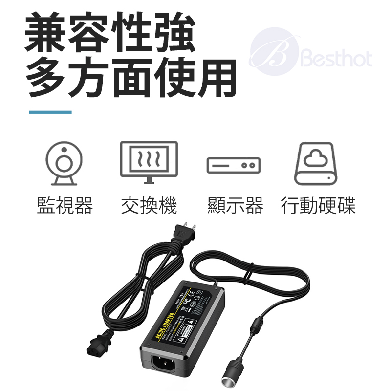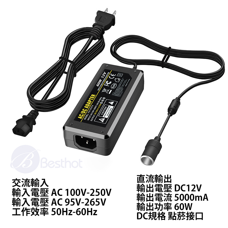 廣泛通用市面商品;支援12V汽車貨車;AC100-240皆適用;DC12V輸出5A電流。