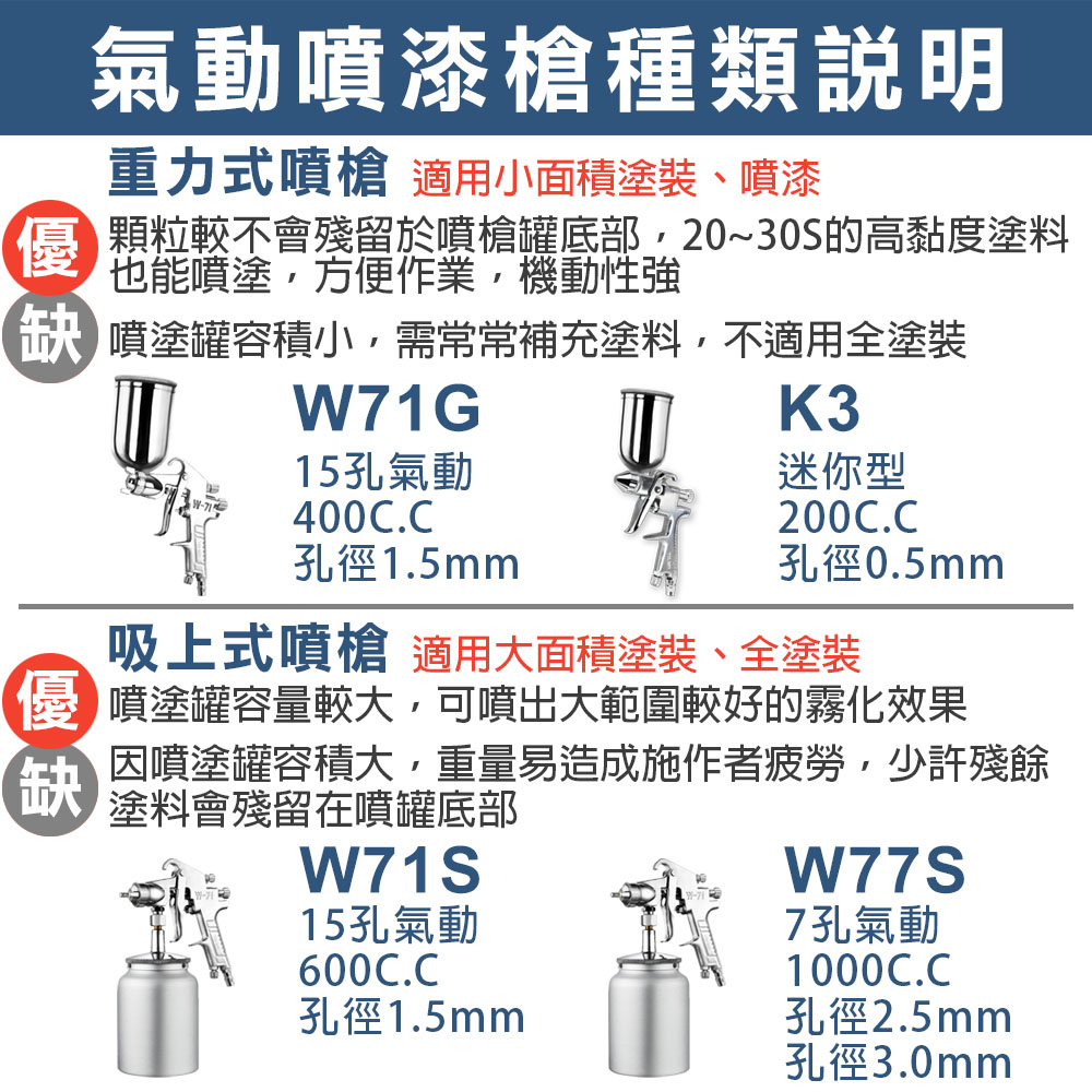 專業型15孔重力式氣動噴漆槍 附漆杯400cc W-71G W71G 孔徑1.5mm 霧化綿密 油漆噴槍