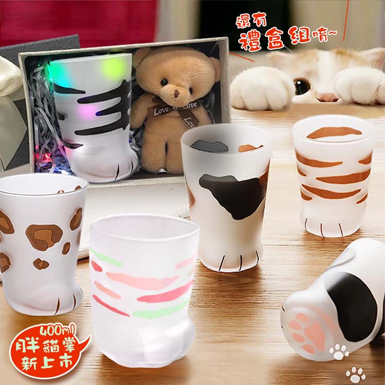 貓掌杯 【多色可選】水晶玻璃杯 貓爪杯 貓腳杯 貓 霧面 水杯 貓掌 貓爪 茶杯 咖啡杯 磨砂 貓腳 貓手 三花