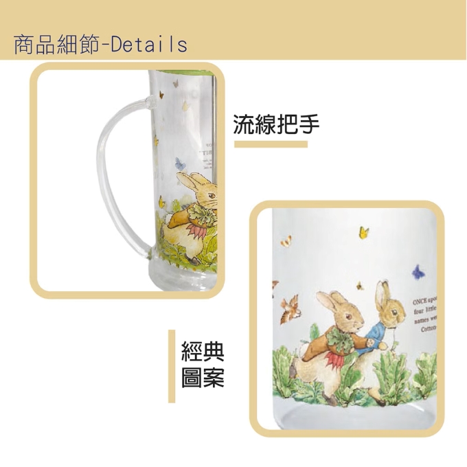 ★ 冷熱飲皆可使用★ 英國Peter Rabbit™原廠授權★ 耐熱玻璃製成,可耐熱至100℃★ 握把符合人體工學設計,好握好拿