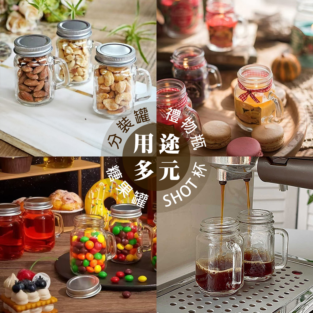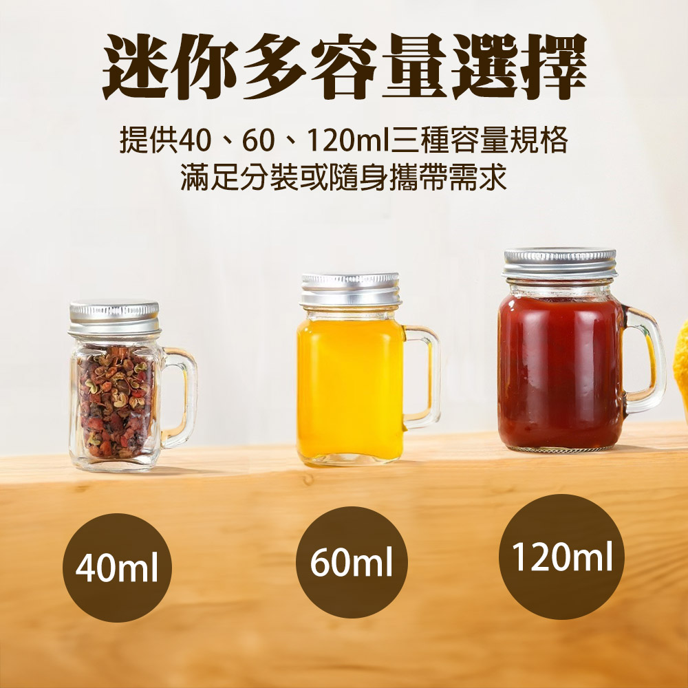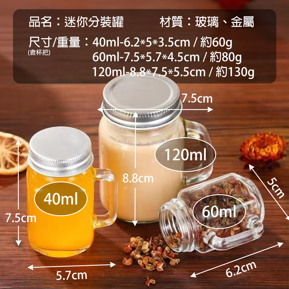 迷你梅森杯玻璃分裝瓶【40ml/60ml/120ml】 迷你分裝瓶 迷你玻璃瓶 40ml 60ml 120ml 梅森杯 玻璃分裝瓶 濃縮咖啡杯 香料罐 醬料杯 堅果罐 一口杯