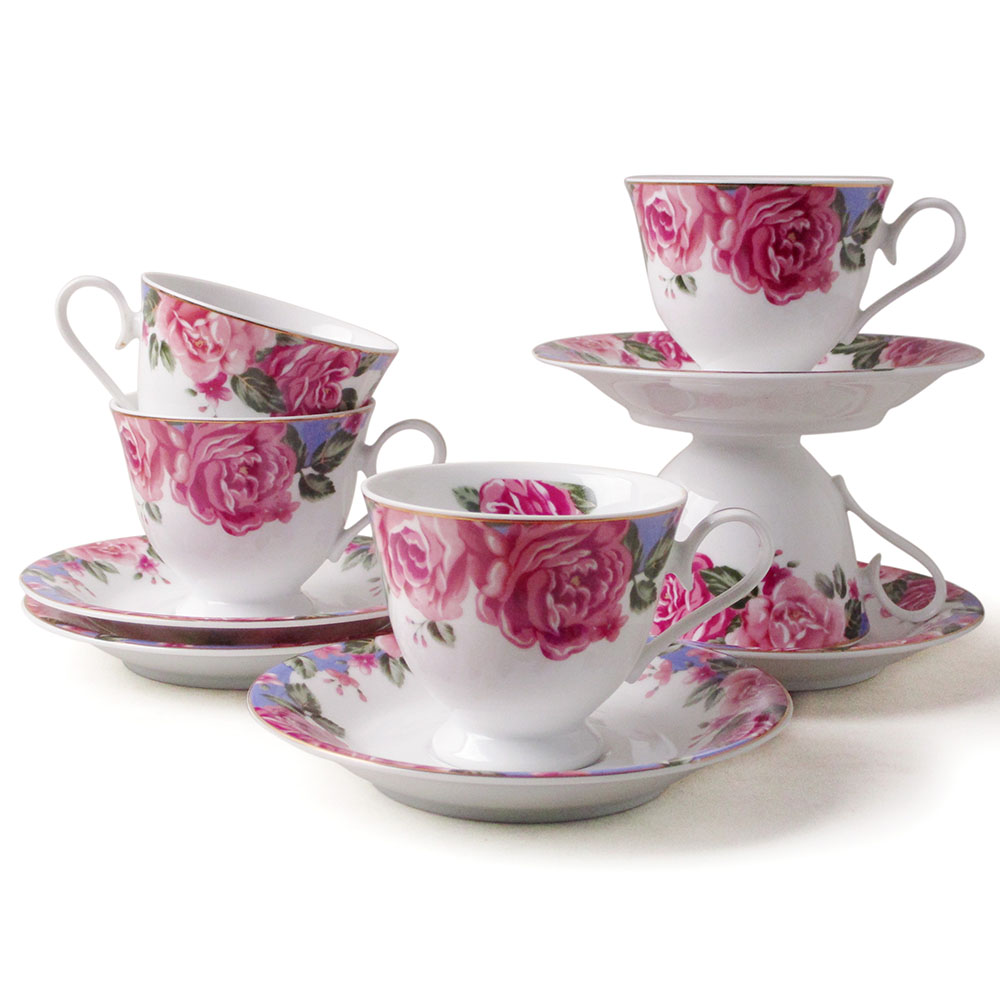 [豐名日本餐具] 咖啡杯五客入組 高台紅玫瑰 ROBERTA / C00CS5-10