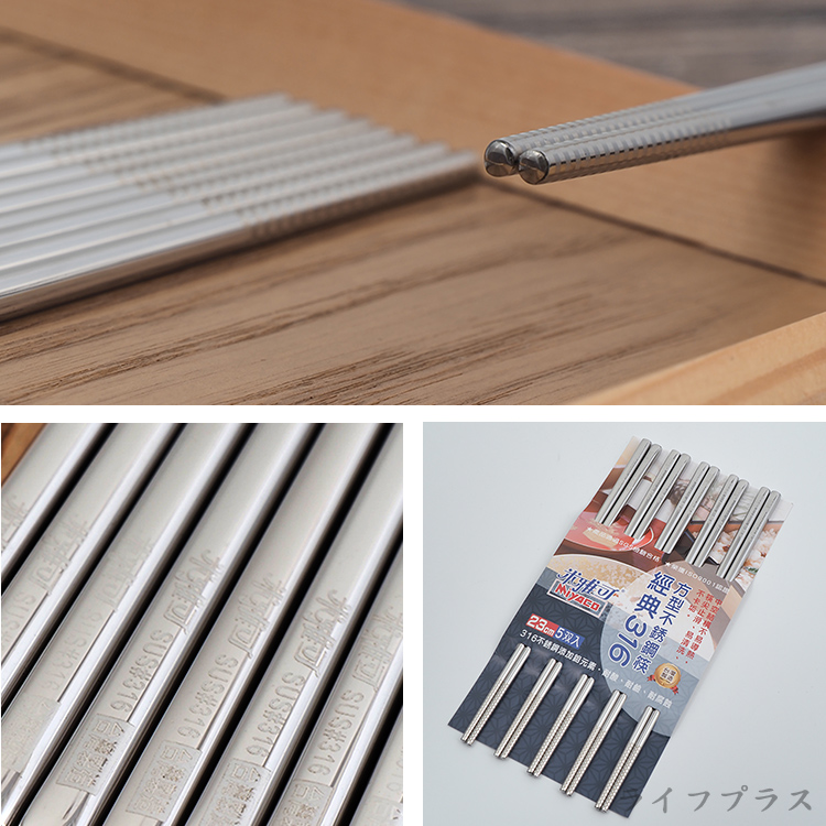 米雅可經典方型316不鏽鋼筷-23cm-5雙入X2組