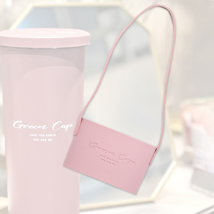 GREEN CUP皮革手提杯套-蜜糖粉紅色-2入