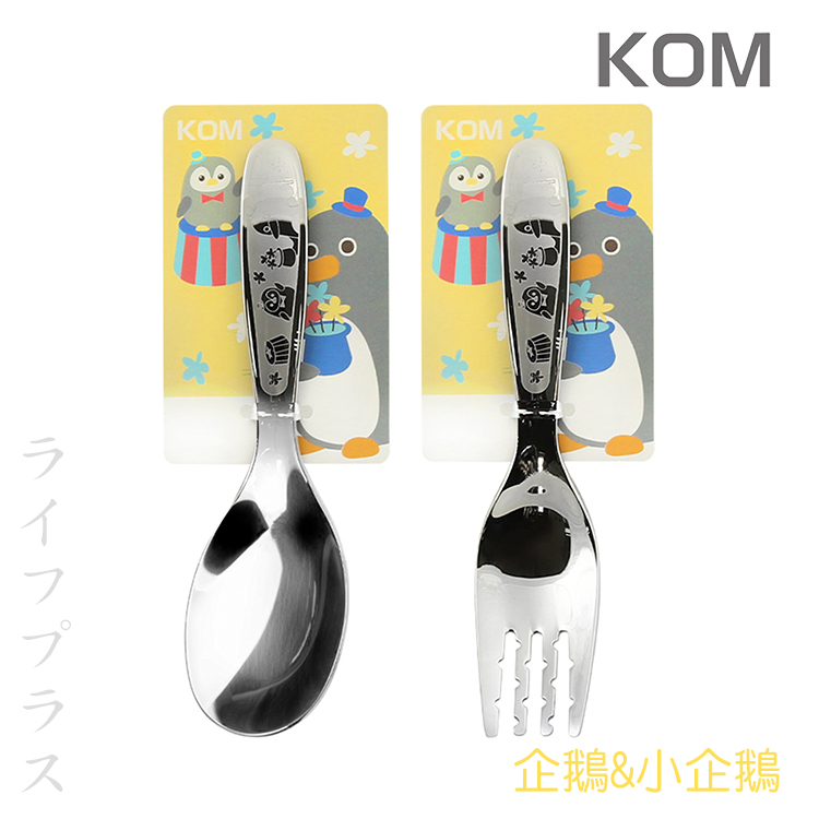 【一品川流】316不鏽鋼兒童平底匙-企鵝&小企鵝x3入+兒童叉x3入-1組