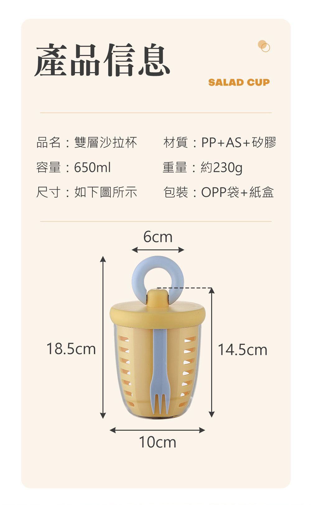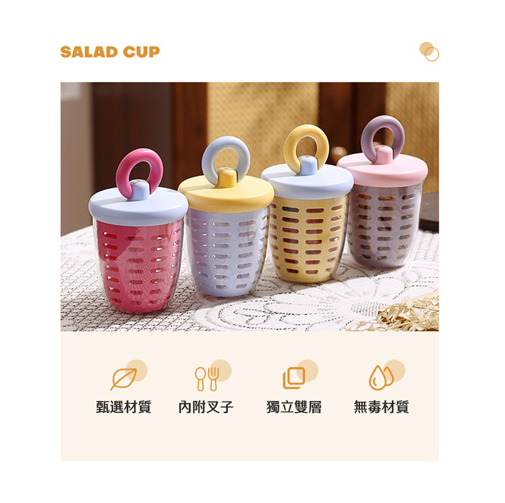 雙層沙拉杯 乾濕分離 650ml 燕麥優格杯 1杯2用 瀝水籃 隨行杯 輕食杯 密封不漏 帶蓋保鮮盒 附叉子 早餐杯