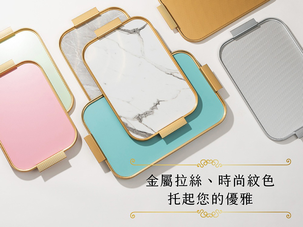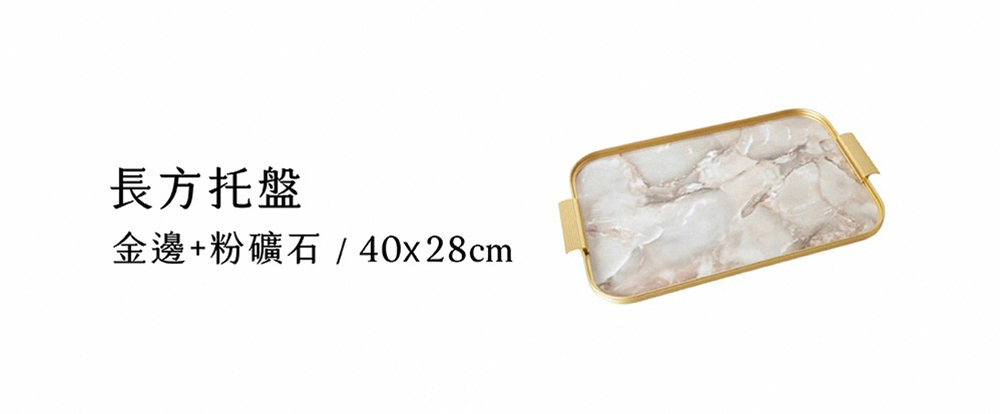 品名:Kaymet 長方托盤 40x28cm 金邊+粉岩石