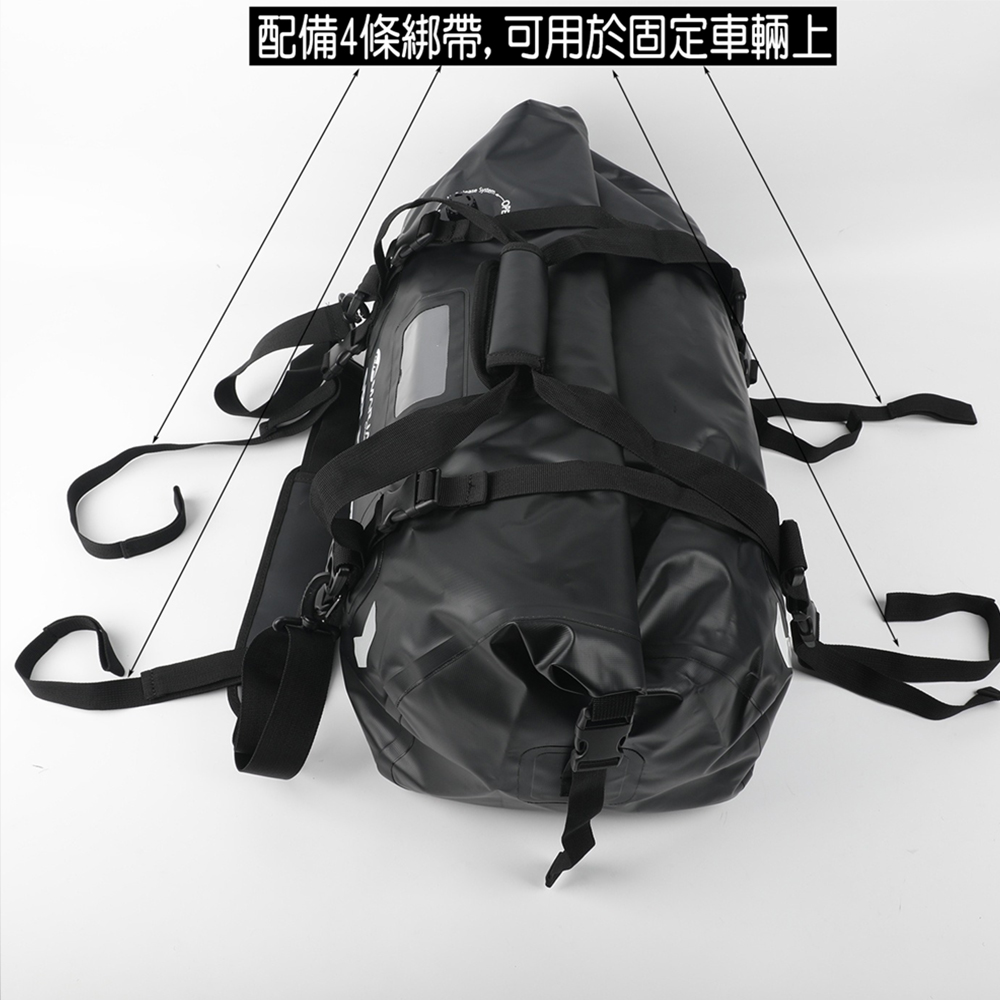 配備4 個快速釋放、快速連接帶,防水包可以快速安全地緊固到您的摩托車上