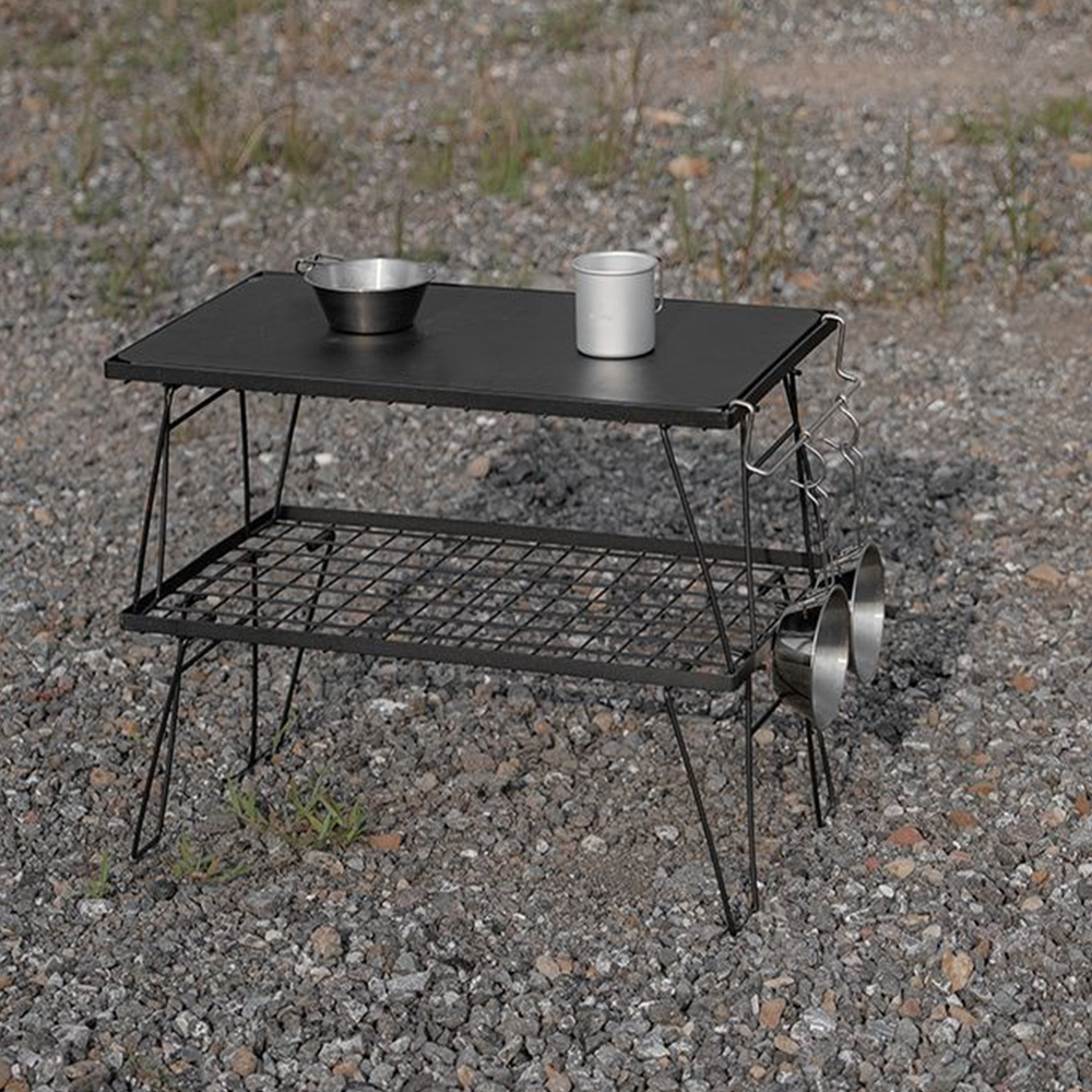 【YV61239】可摺疊鐵架桌 露營桌 網架桌 置物架 旅行野餐 登山 附收納袋