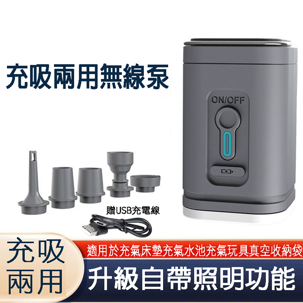 【SV61145】無線電動吸氣打氣機 便攜USB鋰電池可照明充氣泵 可用真空袋充氣墊游泳圈