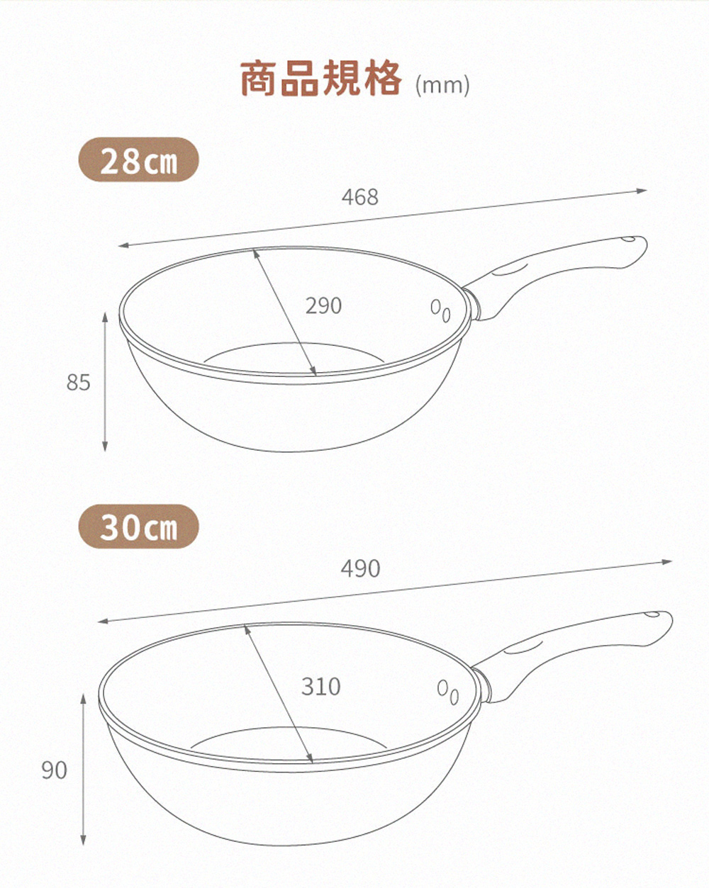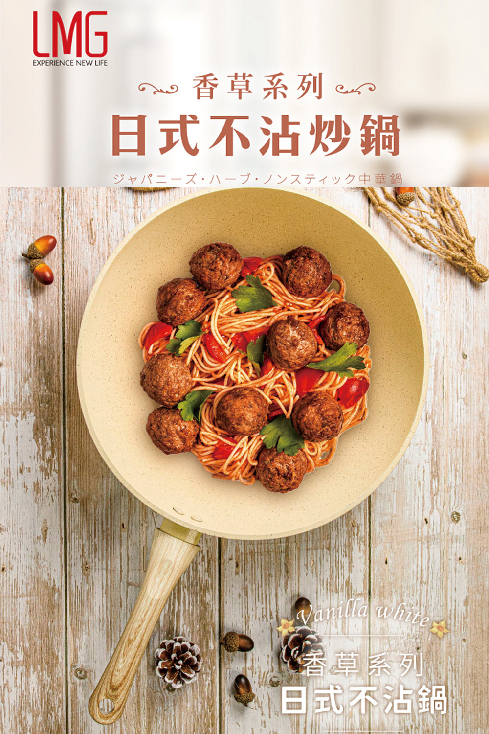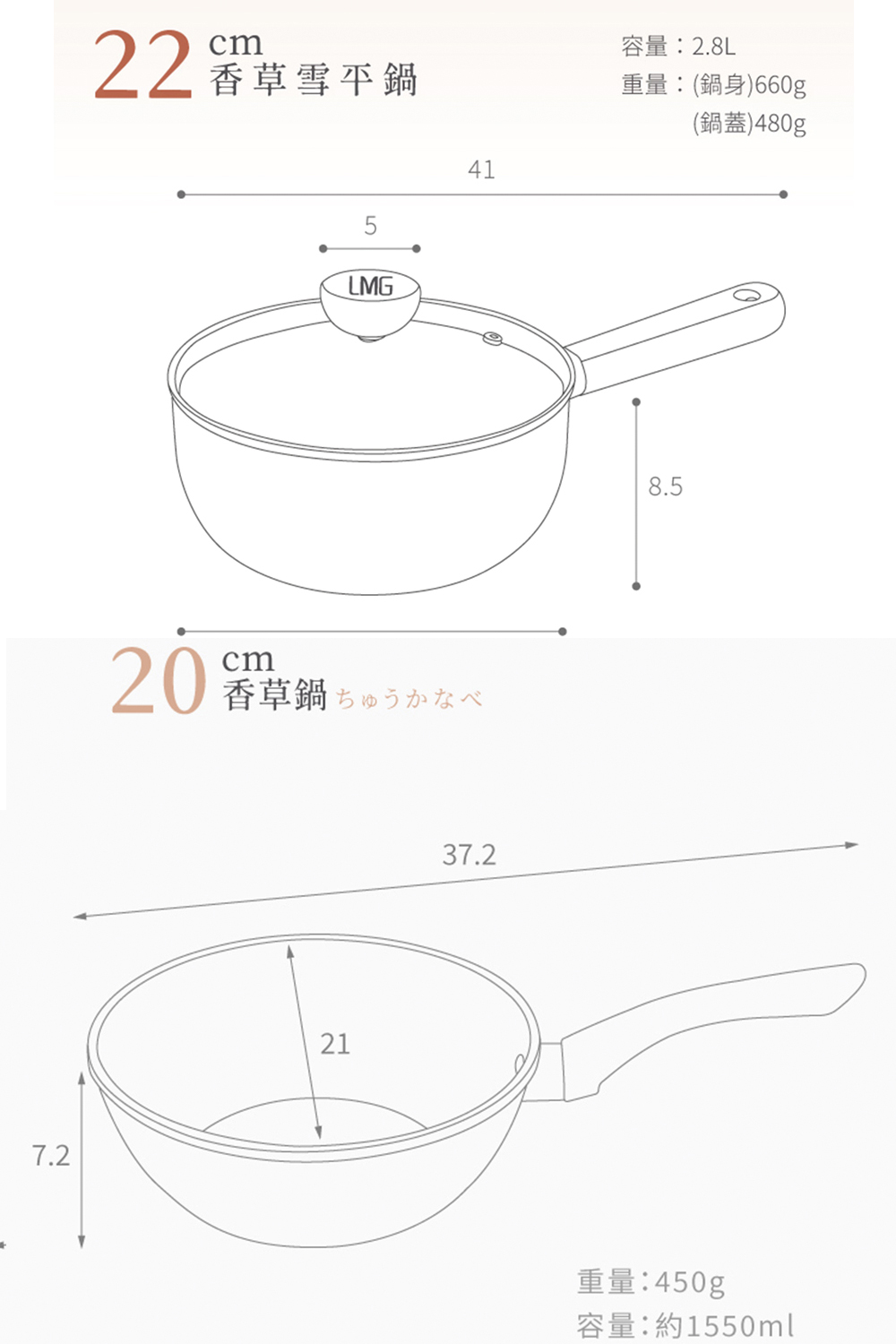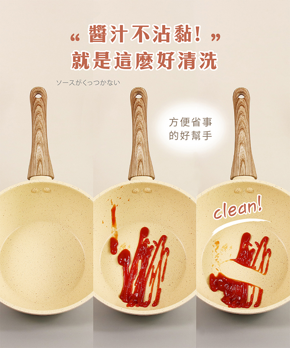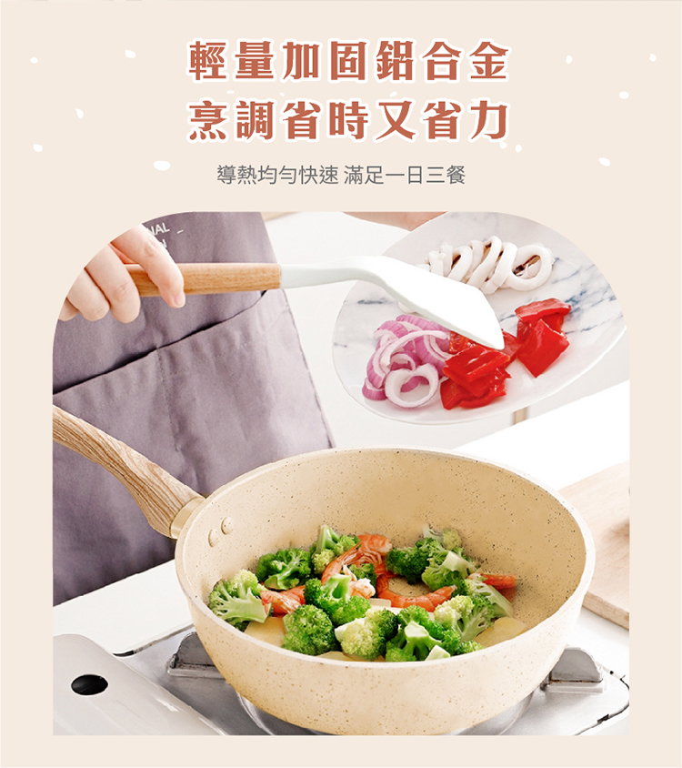 【LMG】香草系列 大小不沾雙炒鍋/雪平湯鍋 三鍋超值組(贈料理鏟夾+玉子燒鏟色隨機)【LMG】香草系列日式不沾炒鍋28/30CM(無蓋)材質:鋁合金、電木防燙手把炒鍋28cm:全長46.8cm*寬29cm*高8.5cm 重量:870G炒鍋30cm:全長49cm*寬31cm*高9cm 重量:940G【LMG】香草系列日式不沾炒鍋-20CM(無蓋)炒鍋20cm:長37.2cm(含手柄)*寬21cm*高7.2cm材質:鋁合金、電木防燙手把容量:約1550ML重量:約450g【LMG】日式香草不沾雪平鍋22cm(附蓋)長41CM*寬22.5*高8.5CM(含手柄)容量:2.8L重量:(鍋身)660g+(鍋蓋)480g商品材質:鋁合金、櫸木防燙手把+玻璃鍋蓋產地:中國注意事項:1.鍋內不沾塗層,請使用木餐具或矽膠杓等,請避開鐵刷or鋼絲球。2.使用時不可讓鍋具空燒,以免影響鍋具壽命。3.使用完畢,請先待鍋子冷卻,再進行清洗! 以免影響鍋子使用。4.導熱快速,建議中小火料理即可5.無需開鍋養鍋,清洗1-2次後即可使用。