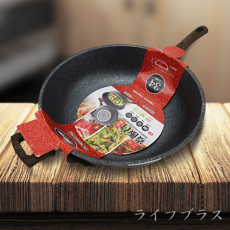 優得二代麥飯石不沾深型炒鍋-34cm-2支