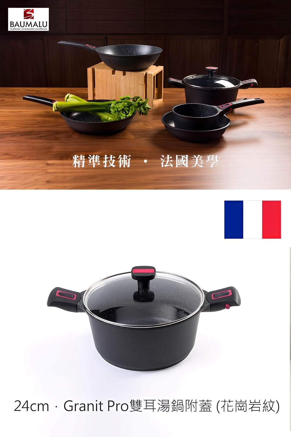 Baumalu-Granit Pro雙耳湯鍋附蓋-24cm