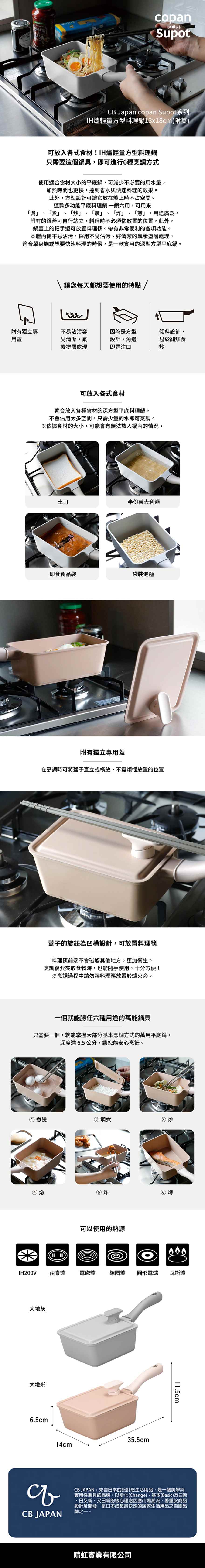 【CB JAPAN】copan Supot系列 IH爐輕量方型料理鍋13x18cm(附蓋)