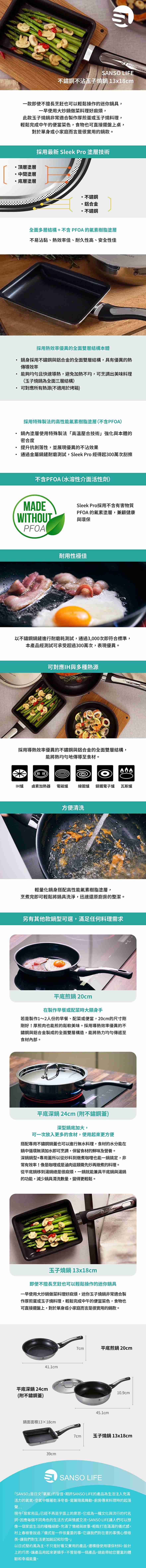 【SANSO LIFE】不鏽鋼不沾玉子燒鍋 13x18cm