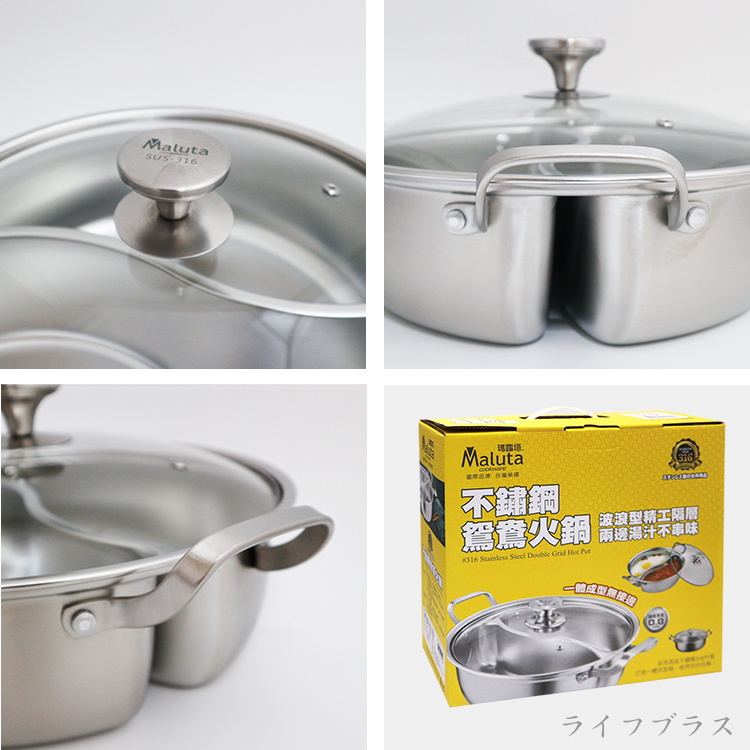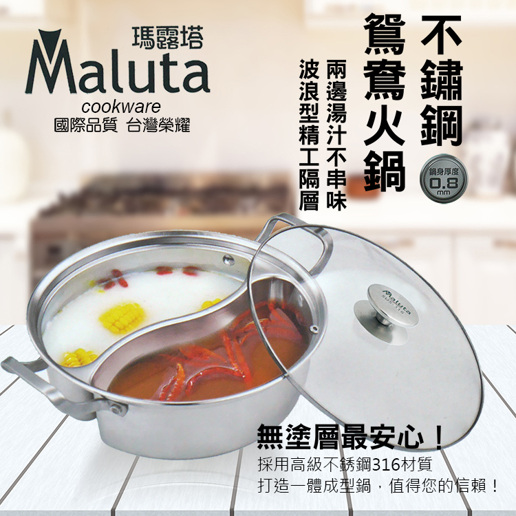 瑪露塔316不鏽鋼鴛鴦火鍋-附鍋蓋-33cm-1組