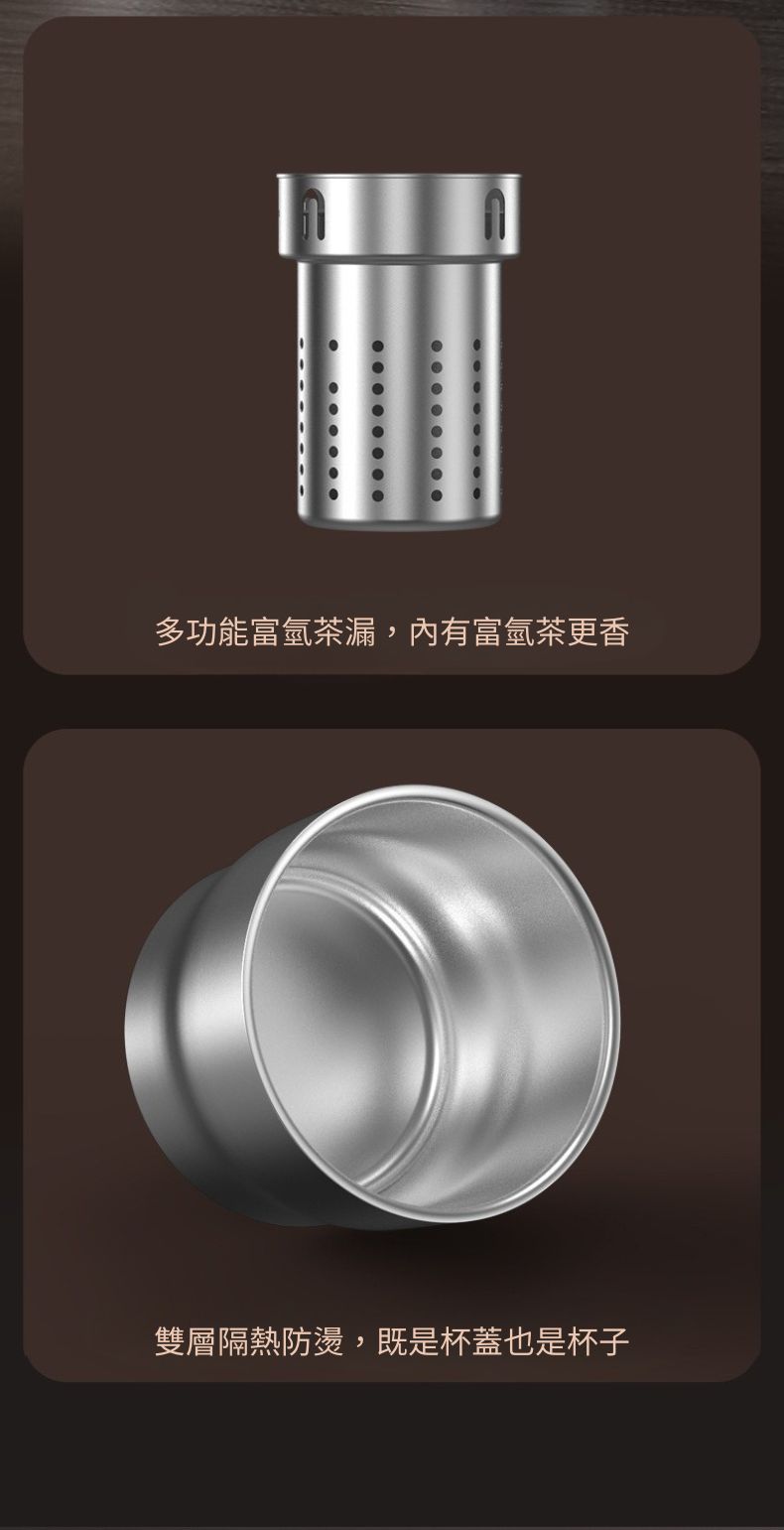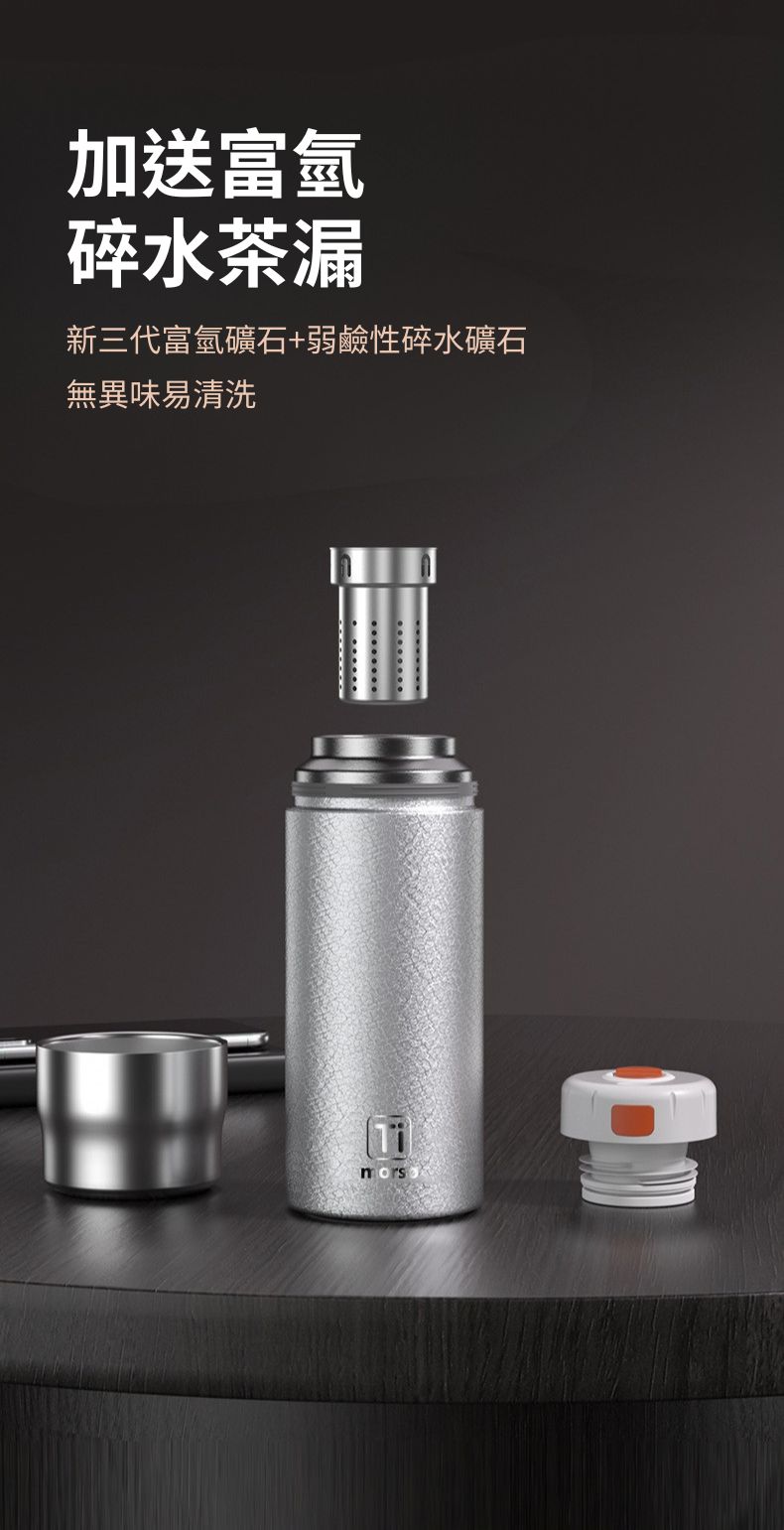 ◎覆鈦技術,抵抗各種酸鹼性、長效保鮮抑菌◎加送富氫礦石,弱酸性碎水礦石,無異味易清洗◎保暖保冷、四季可用◎自帶純鈦茶漏,過濾更徹底◎冰花紋杯身、手感光滑、防磨耐刮◎直飲、搭配杯子,一杯兩用