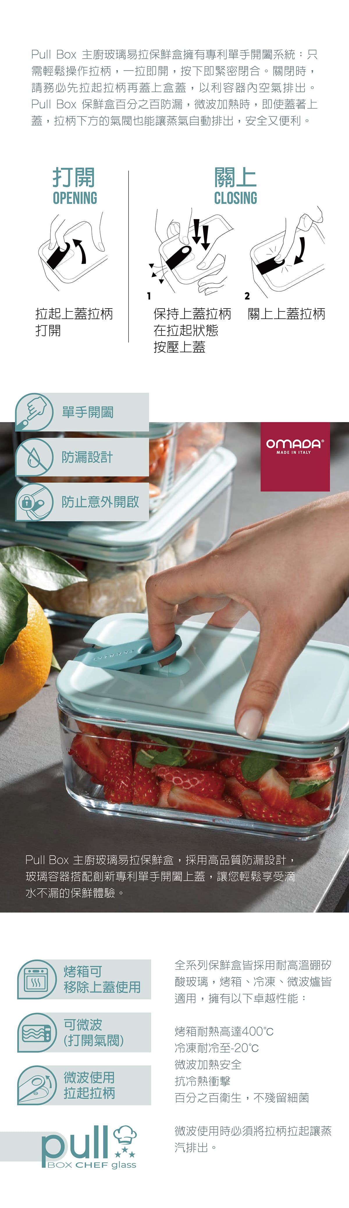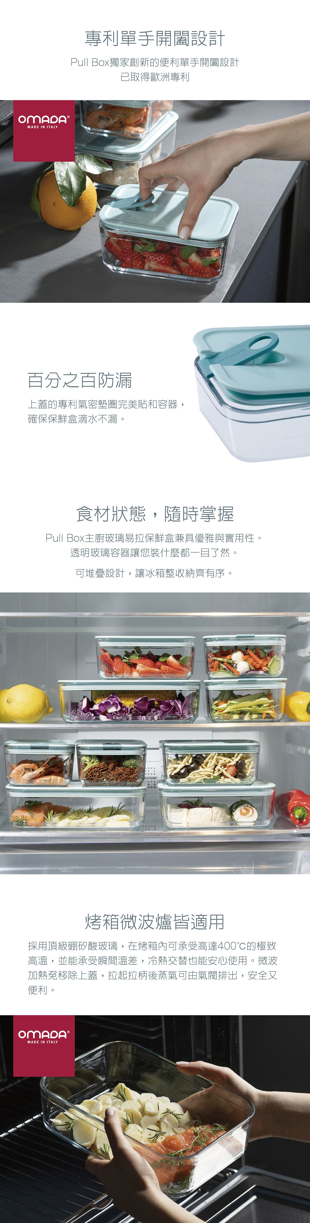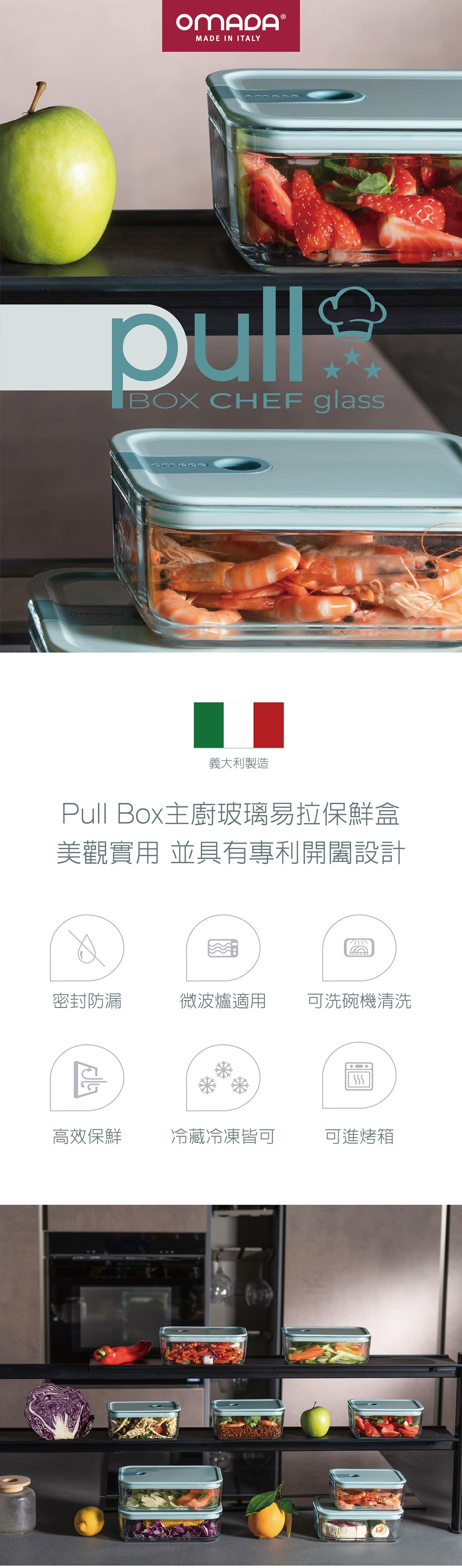 Omada 義大利保鮮盒主廚玻璃系列實用三入組-紳士藍(0.75L+1.1L+1.6L)