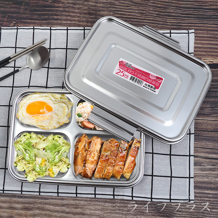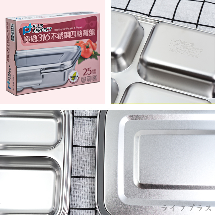 PLUS PERFECT極緻316不鏽鋼四格餐盤-25cm-附蓋-2入