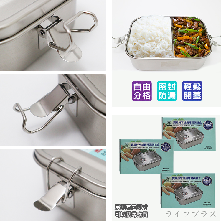 寶馬牌304不鏽鋼防漏便當盒-1400ml-2入