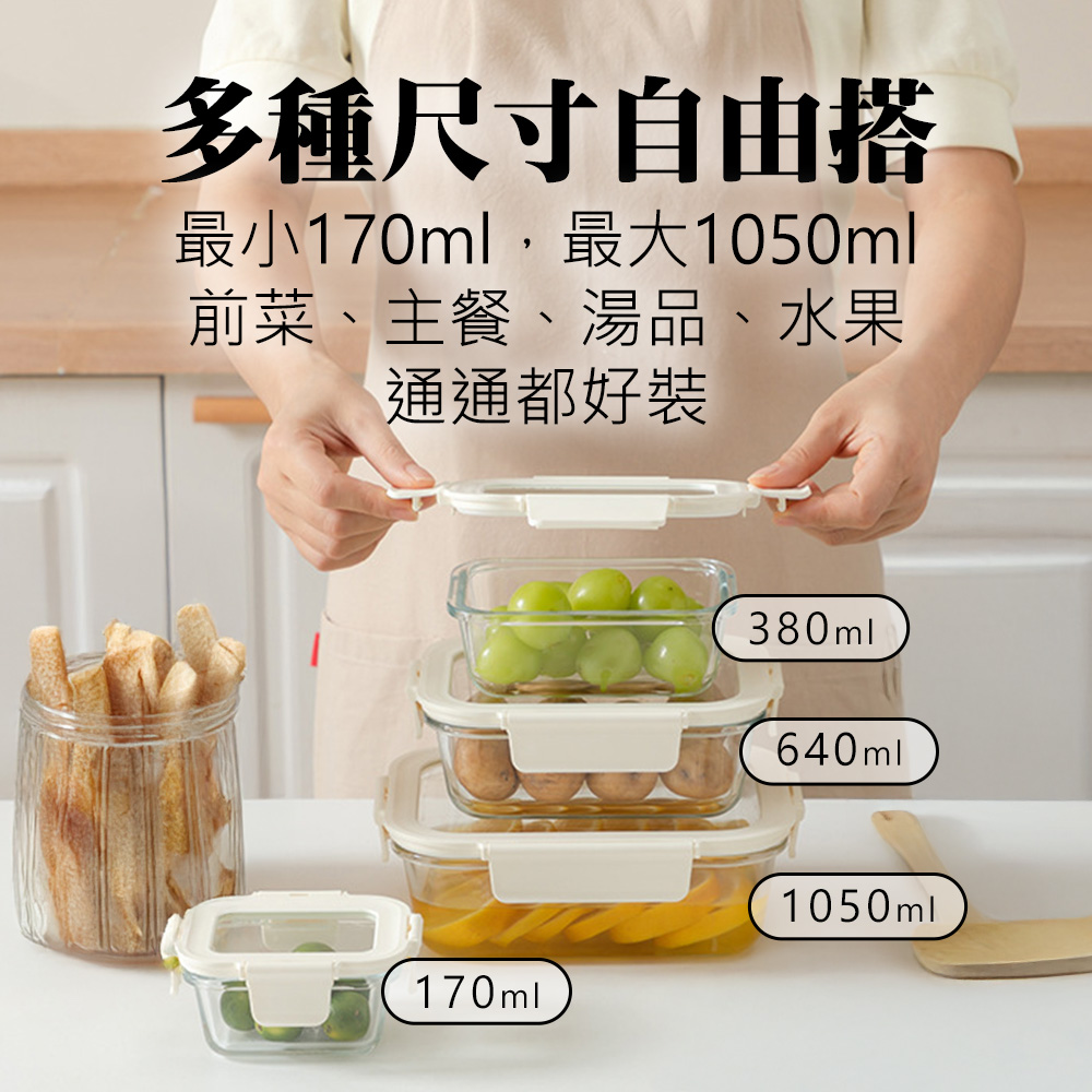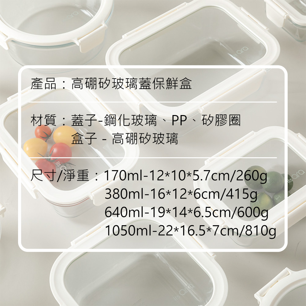 高硼矽玻璃保鮮盒 【170ml~1050ml】 鋼化玻璃蓋 可微波 不卡油 好清洗 透明可視 密封防漏 便當盒 玻璃碗