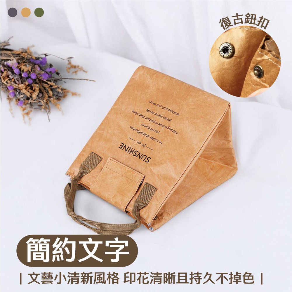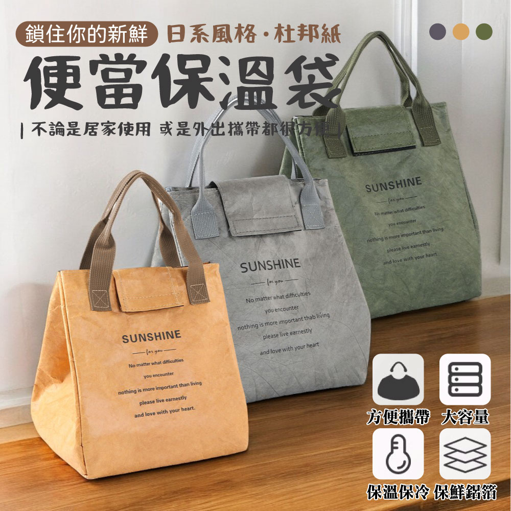 日系風格杜邦紙便當保溫袋🍱✨商品尺寸: 22*20*16cm商品重量: 75g商品材質: 鋁箔+珍珠棉商品工藝模式: 熱轉印、絲印、覆膜商品選項:復古祖母綠/天空烏雲灰/日系百搭卡其適用場景:外賣打包/野餐/戶外休閒/親子聚餐商品特點:加寬底部: 承重力強,容納更多物品,使用方便。縫線整齊: 無毛邊設計,品質精緻。魔鬼氈設計: 易開易取,方便實用。優質鈕扣: 復古風格,增加產品的質感。銀色鋁箔保溫層: 有效保冷保溫,讓食物保持最佳狀態。易清洗: 可水洗杜邦紙與鋁箔材質,打理方便,耐用持久。高清印花: 文藝小清新風格,印花清晰且持久不掉色。杜邦紙材質介紹:特性: 杜邦紙由高密度聚乙烯纖維製成,具有均衡的物理特性。優點: 輕薄柔軟、堅韌抗撕裂、防潮防水、不易變形。結合特點: 集合了紙、布、薄膜的優點,比傳統布料更靈活實用。用途多樣:適合日常使用,也能輕鬆應對各種戶外活動。是居家外出的好幫手,讓你的生活更有品質感。