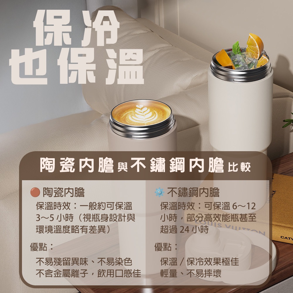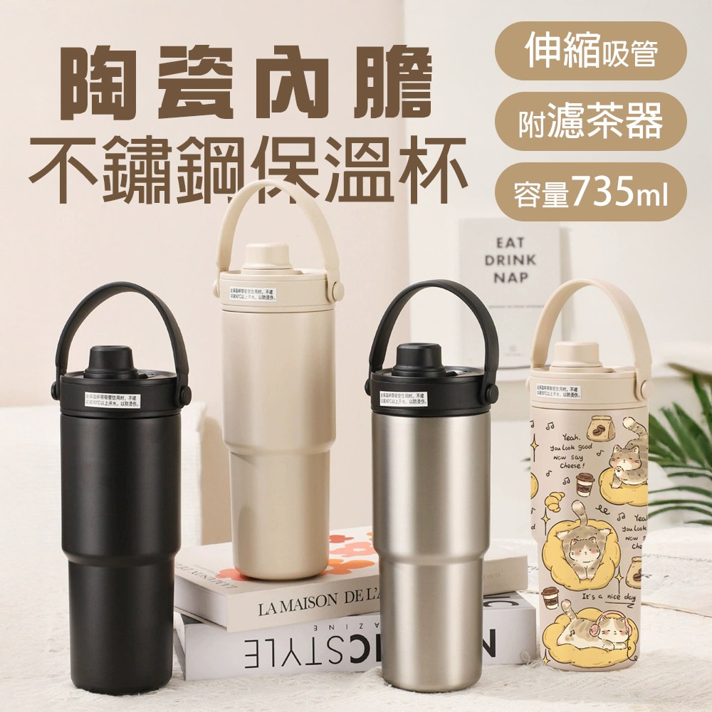 無論通勤、運動還是宅家追劇這款700ml保溫杯都是你的隨行首選!🥤內層陶瓷不殘留氣味,飲品純粹不無怪味,矽膠提把好握不滑手。☕還貼心附有伸縮吸管設計,喝冷飲也超方便💧保冷保溫一整天,隨時享受剛剛好的溫度,是忙碌生活裡的小確幸!✨【產品信息】品名:陶瓷內膽保溫杯材質:陶瓷、316不鏽鋼、矽膠容量:700ml尺寸:7.1*8.5*25cm顏色:奶霜貓、淺棕色、極光銀、暮色黑