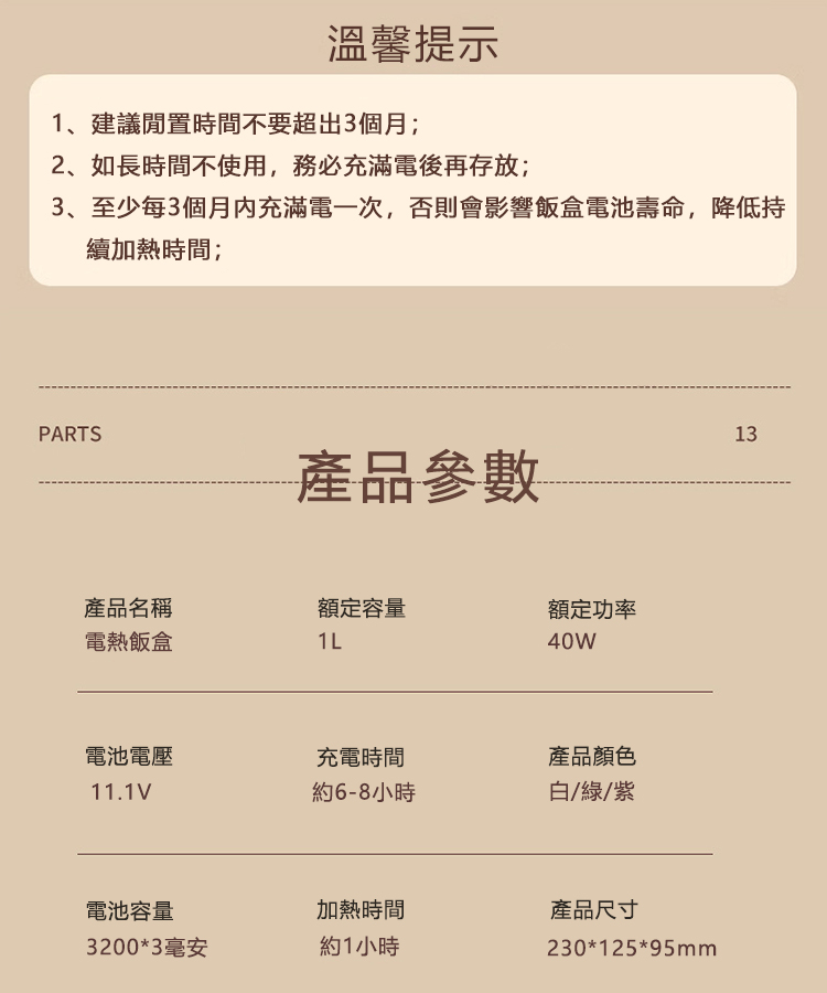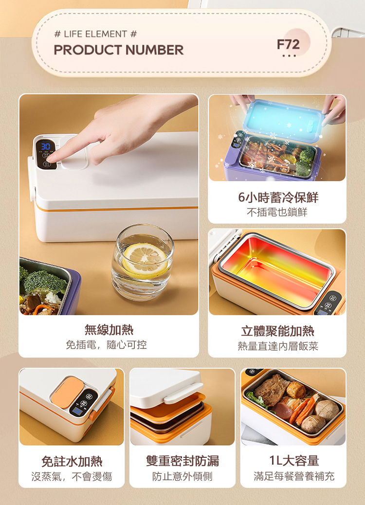 [創聯]無線免插電免注水加熱飯盒-F-818 三色選