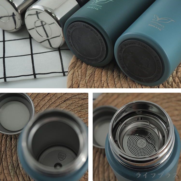 造型優美時尚,瓶身內層採用316不鏽鋼材質,耐酸鹼抗腐蝕耐高溫堅固耐用,外層採用304不鏽鋼,瓶身細沙噴塑耐磨防刮,具保冷保溫雙用途,強力保冰時外殼不冒汗,底部止滑設計,不易滑動,不怕刮傷,內附304不鏽鋼沖茶濾網,輕鬆沖泡茶類飲品,隨時隨地都能享受透沁涼的冰飲。