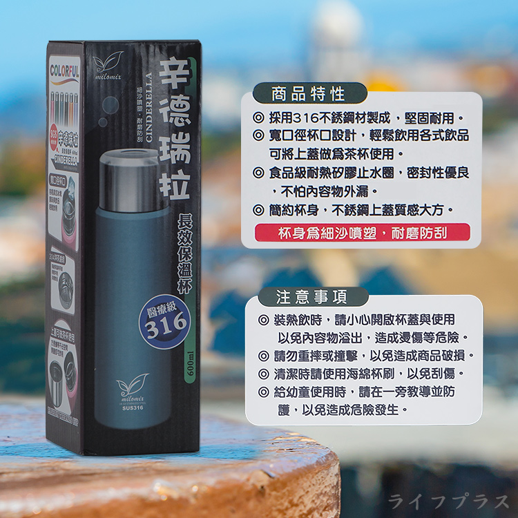 辛德瑞拉316不鏽鋼長效保溫杯-600ml-藍色-1支