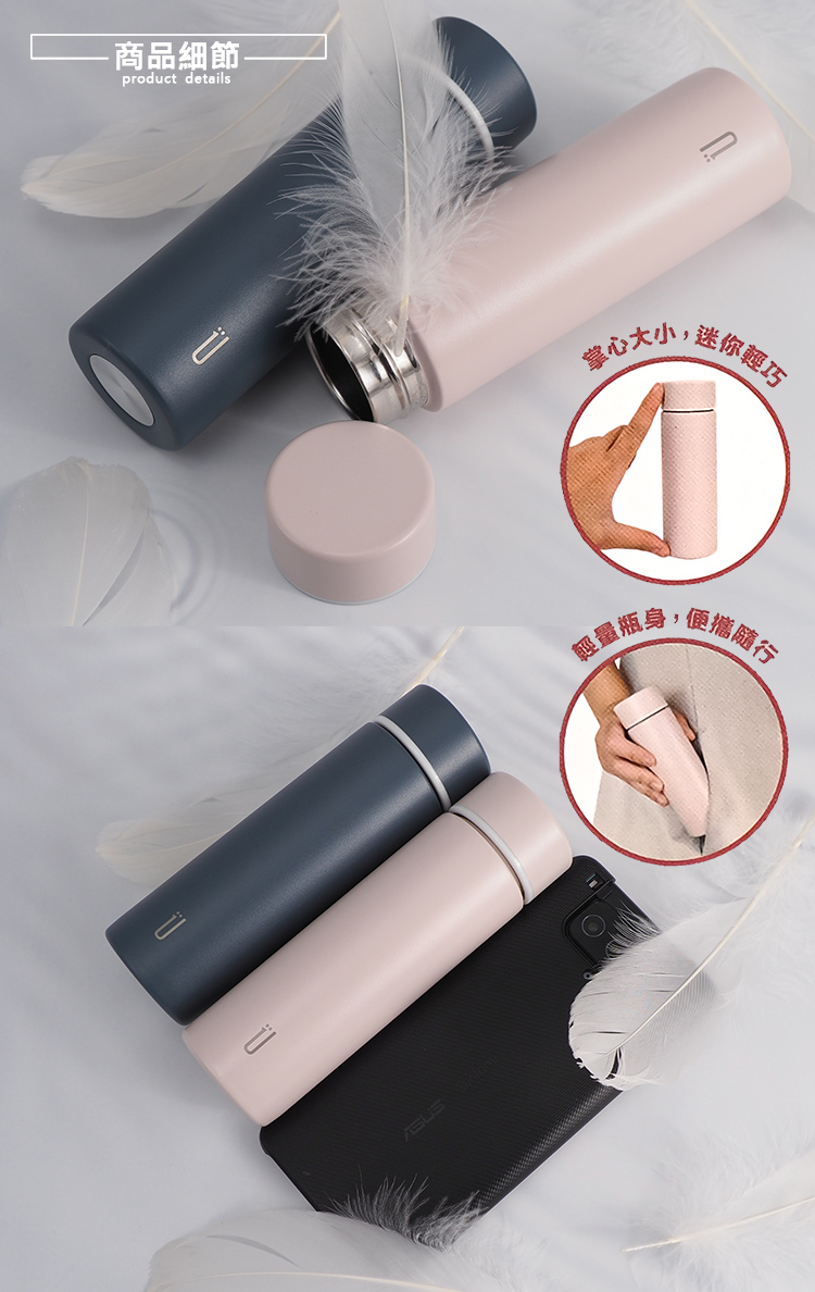 自行攜帶杯子或水壺,環保又省錢!通過SGS檢驗合格安心使用,內膽採用304不鏽鋼材質,耐高溫堅固耐用容易清洗,真空隔熱構造,具保冷保溫雙用途,優美時尚質感一流,不論在家中、上班、上學、野外登山、郊遊旅行皆適用,可立式可橫躺,自由自在置放方便,小容量設計,瓶身極度輕薄設計攜帶方便,隨時隨地都能享受飲用。