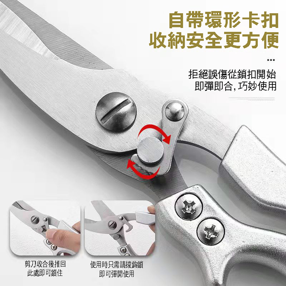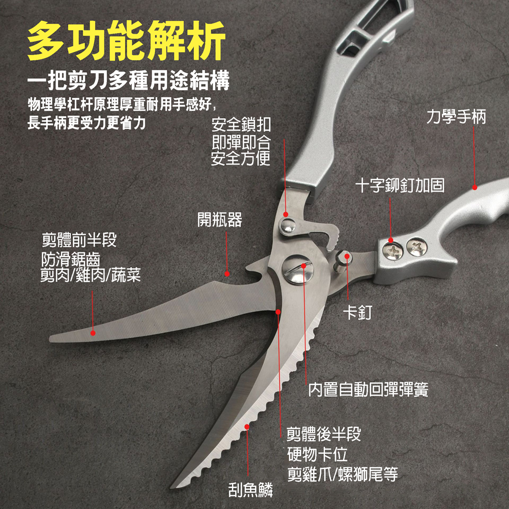 【SV61318】二代不鏽鋼多功能雞骨剪刀 料理剪 食物剪刀 骨頭剪 海鮮螃蟹剪 料理剪 開罐器 安全扣設計 廚房剪