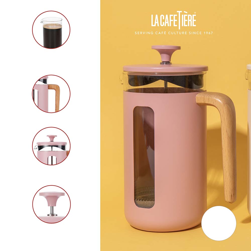 沾沾生活DipDipLife | La Cafetiere|皮薩不鏽鋼濾壓壺|粉色(大)1000ml