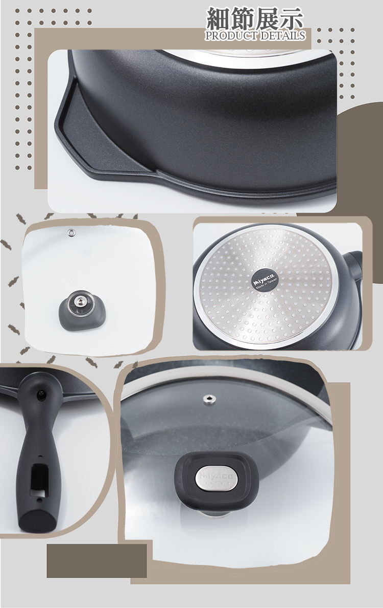 米雅可礦岩鑄造不沾深寬平底鍋-30cm-附蓋-1支