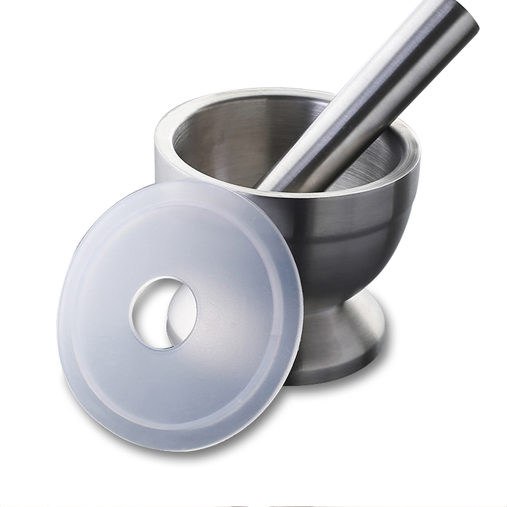 【SV61228】多用途304不鏽鋼 搗碎器 研缽 搗盅 香料研磨器 搗蒜器 搗藥器 附棒子+矽膠防濺蓋