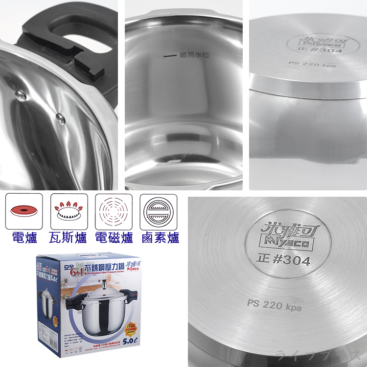 米雅可正304不鏽鋼安全6+1壓力鍋-5L-雙耳-1支
