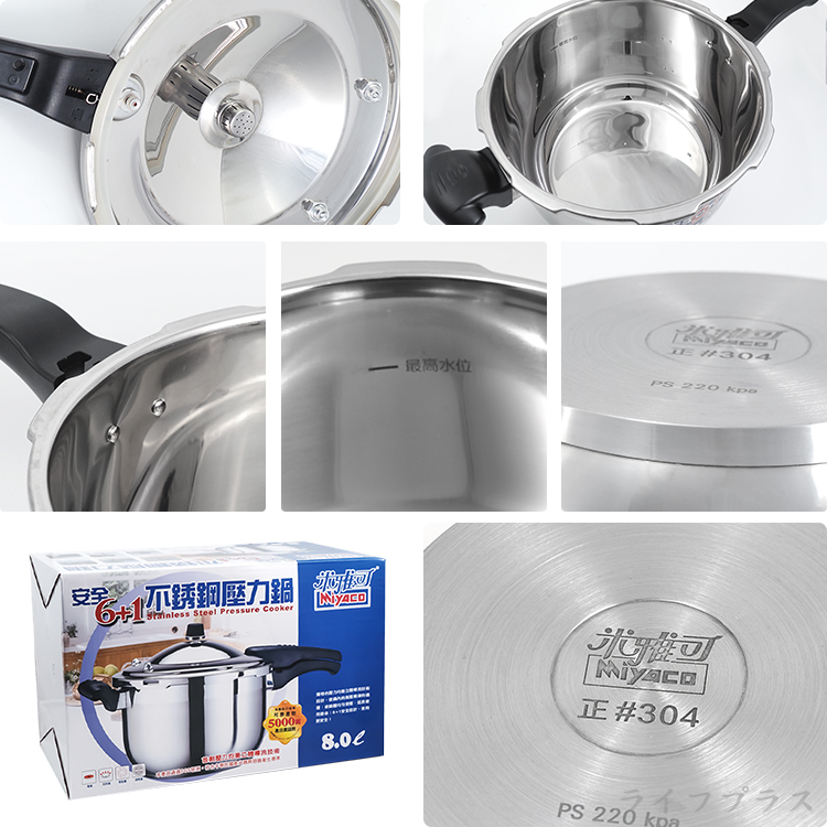 米雅可正304不鏽鋼安全6+1壓力鍋-8L-單把-1支