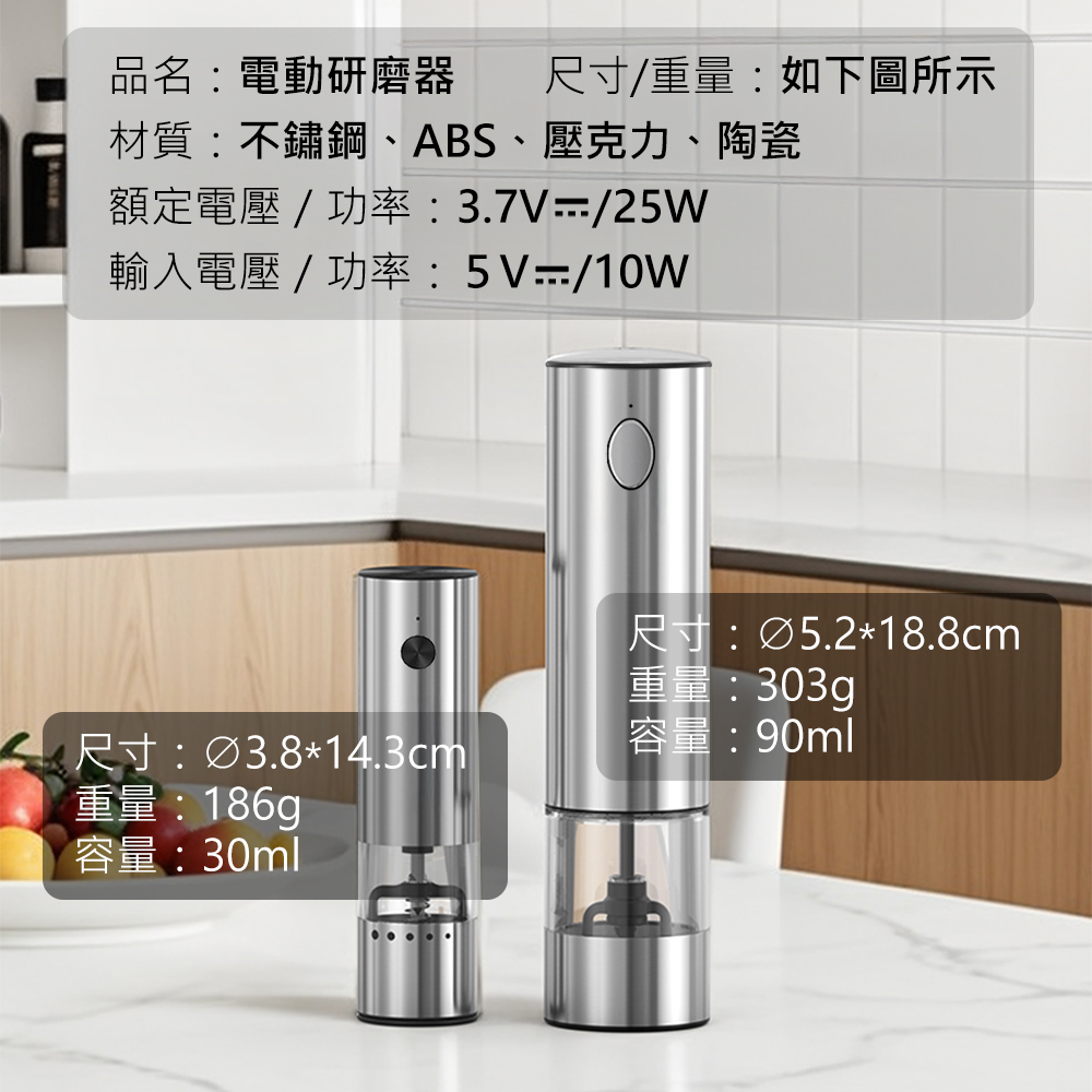 電動研磨器【30g/90g】充電式 電動胡椒研磨罐 自動 不鏽鋼 香料研磨器 電動胡椒研磨器 研磨器 研磨罐 電動研磨罐