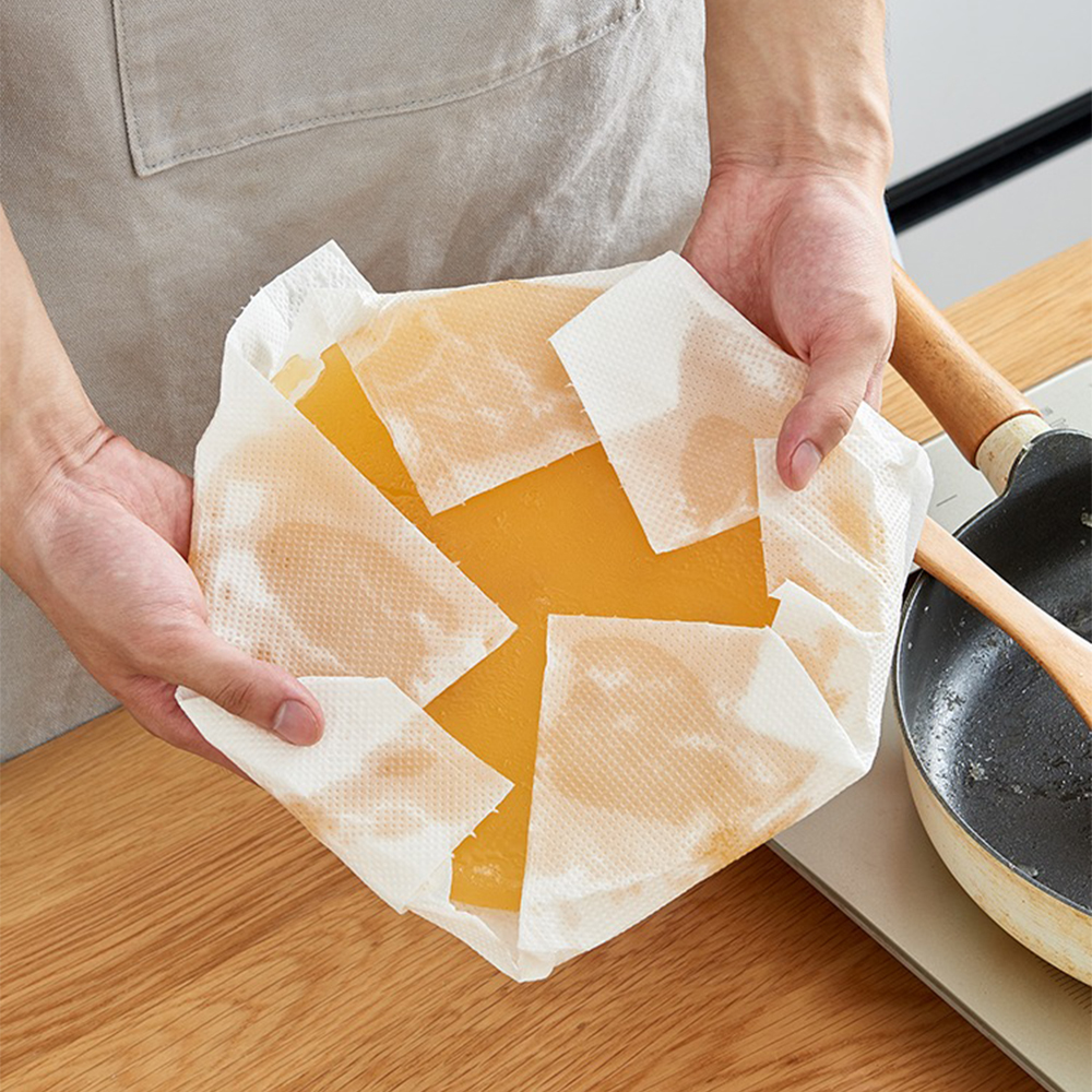 ★ 廢油裡的食物屑屑也可一起凝固,直接丟置可燃垃圾裡,清洗鍋子更加輕鬆