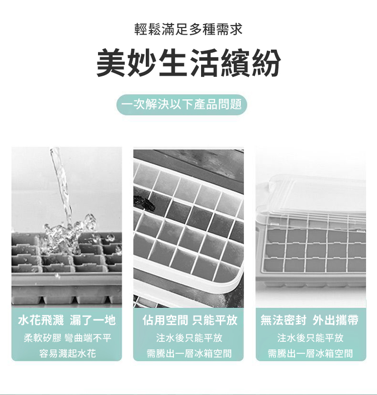 ● 時尚水壺趣味製冰● 輕鬆注水避免灑漏● 開蓋一拉快速出冰● 易於收納不占空間款式:白色規格:17格材質:PP尺寸:如圖片所示重量:355g產地:中國材積:19*13*7cm包裝內容物:本體*1