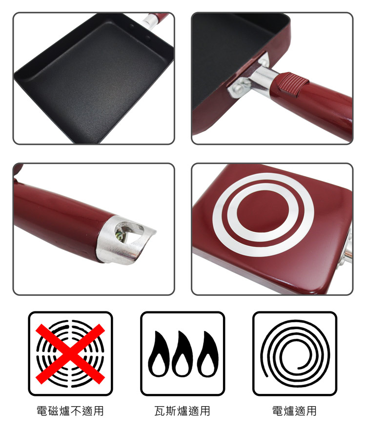 採用不沾易潔塗層,不留食物殘味,傳熱快速,儲熱性佳,料理食物好鍋具,適用瓦斯爐、電爐,電磁爐不適用。