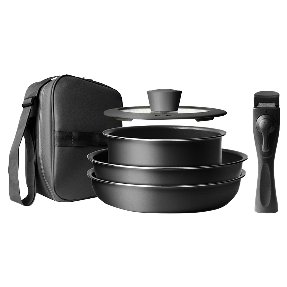 煎、炒、燉、煮三鍋一組,滿足露營料理需求 握柄可拆卸式設計 ,日本Daikin不沾塗層品質 導磁覆底適用電磁爐、鹵素爐、瓦斯爐不挑爐具