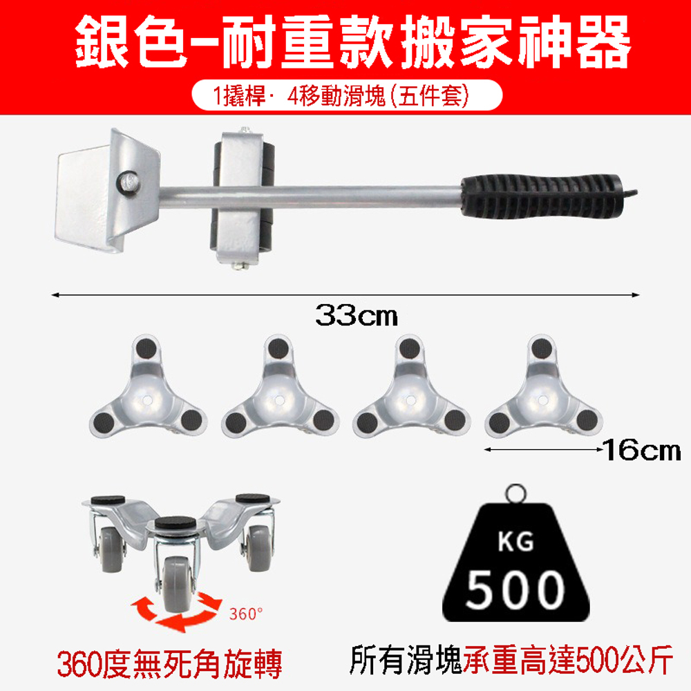 品名 銀色搬家神器滑輪五件組–耐重款 商品介紹