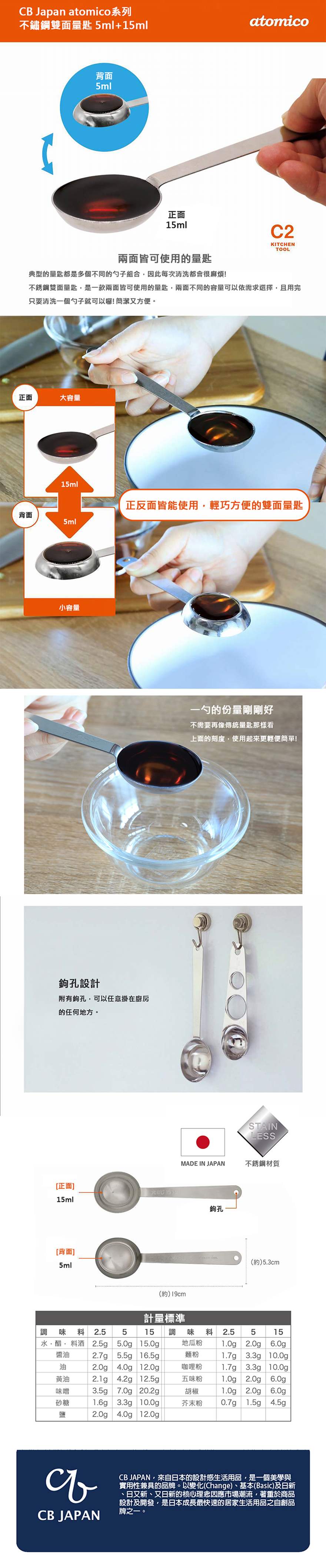 【CB JAPAN】atomico系列 不鏽鋼雙面量匙 5ml+15ml