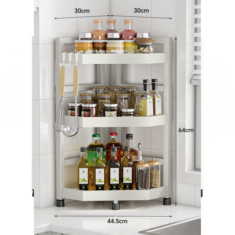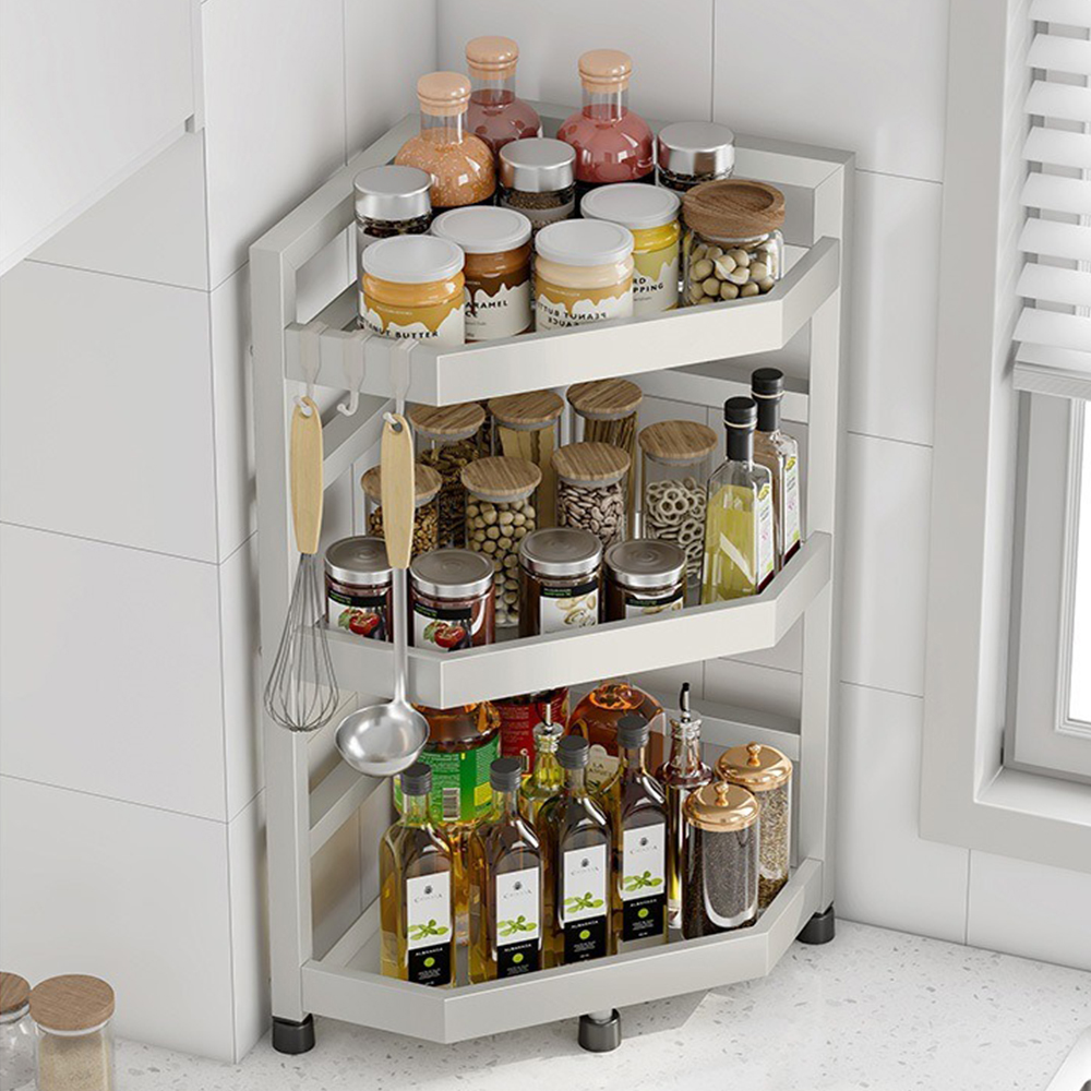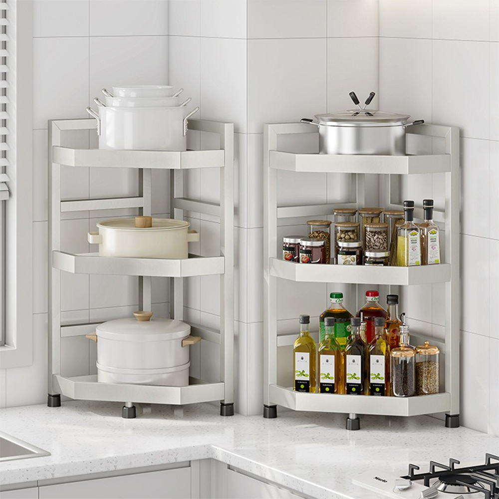【YV61279】三層多功能檯面 不銹鋼廚房調味料置物架+筷子筒 三角置物架 轉角瓶罐收納架 三角扇形收納架