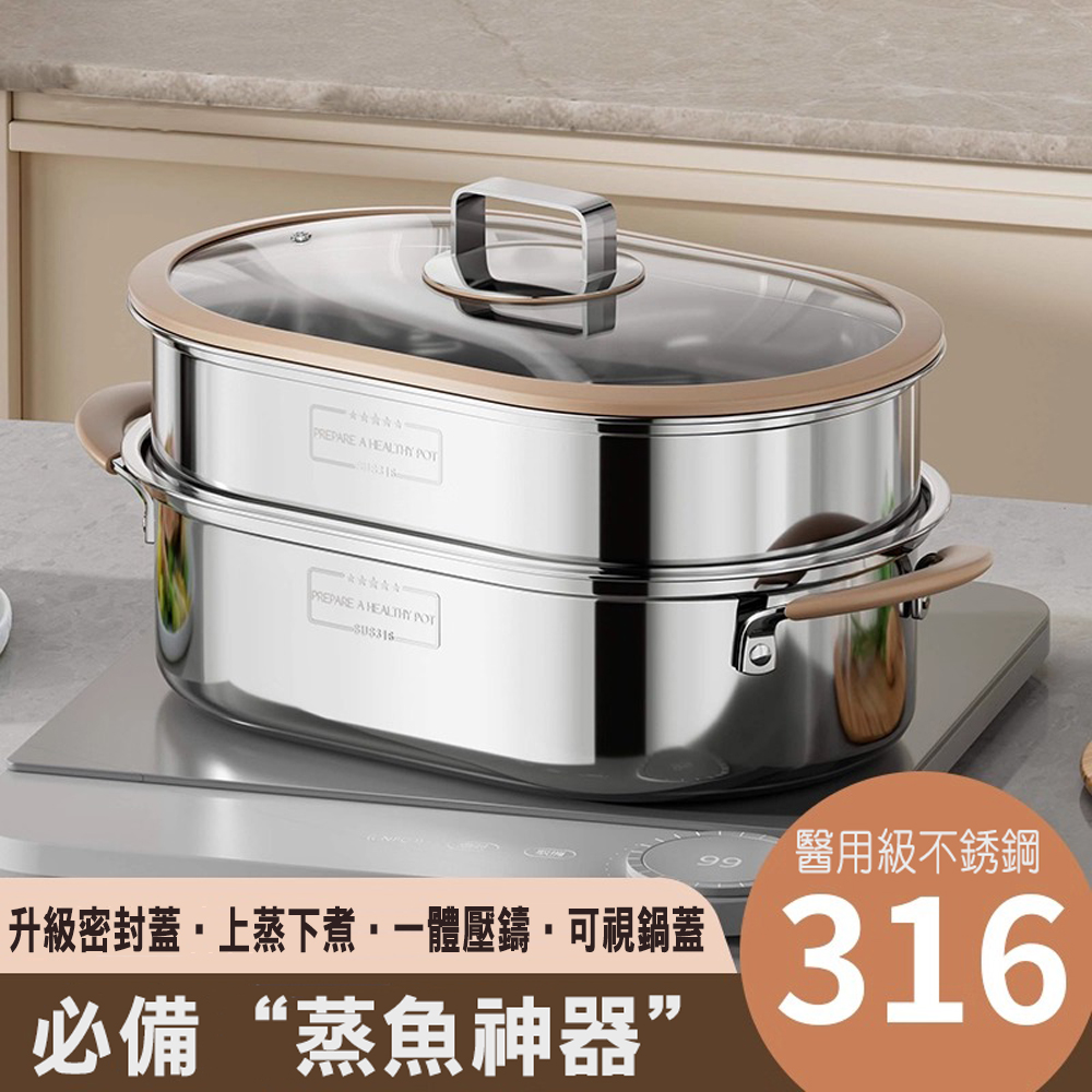 316不鏽鋼材質–堅固耐用,耐高溫、易清潔、不生鏽,無論是蒸魚鍋具、蒸氣鍋或不鏽鋼鍋