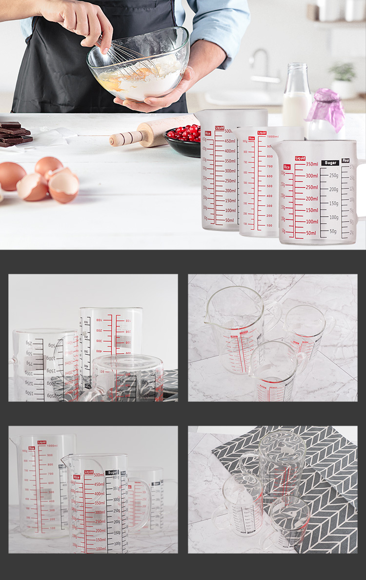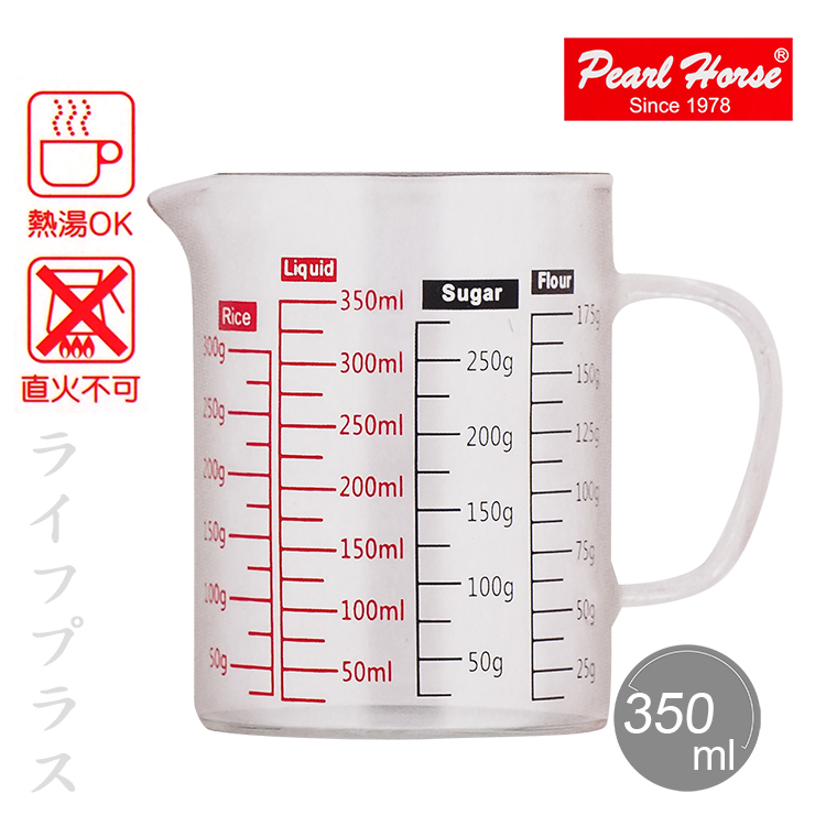 台灣玻璃製造品質安心,硼矽酸耐熱玻璃材質,冷熱水OK耐冷熱溫差,高透明度一目了然,杯外有刻度標示,料理食物好幫手。